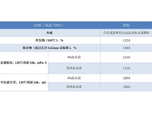 - CMS是淀粉經(jīng)堿化、醚化引入水化羧甲基反應(yīng)而成。具有優(yōu)秀的抗飽和鹽水能力,抗鈣能力強(qiáng),降失水效果非常好,可以把失水降到2ml以內(nèi),能有效避免水泥污染和鈣離子污染引起的鉆井液失水增高。由于原料來(lái)源廣泛,價(jià)格特別低廉,特別適合低成本鉆井。該產(chǎn)品使用時(shí)配合殺菌劑效果較好。